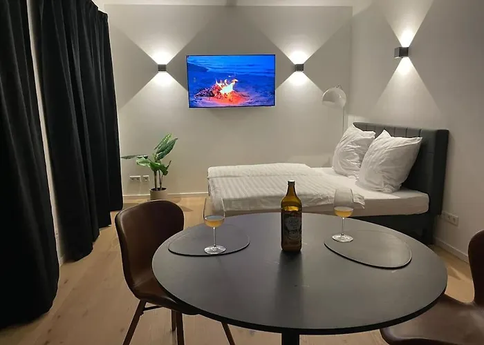 Für Selbstversorger ist eine Küche mit einer Kaffee-/Teemaschine, einem Kühlschrank und einem Herd vorgesehen. Diese Unterkunft bietet den Gästen auch Ausstattung zur Kaffee- & Teezubereitung. Wenn Sie nach einem anstrengenden Tag keine Lust zum Kochen haben, können Sie im Restaurant Neumond, ca. 5 Minuten Autofahrt von diesem Apartment entfernt, Gerichte der deutschen Küche genießen. Das Barrierearme Neubauwohnung liegt nur wenige Schritte entfernt vom Bahnhof S Nordbahnhof.